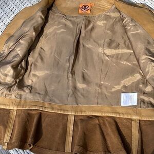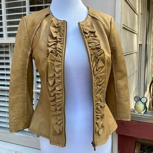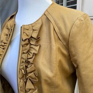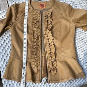 TORY BURCH Peplum Camel Leather Jacket Size 2