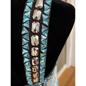 Brightly colored turquoise and clear beads all around front and vack side zipper sz Medium