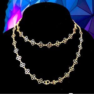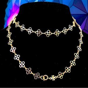 This Tory Burch necklace looks great as a long single strap necklace or as a short double strap necklace.