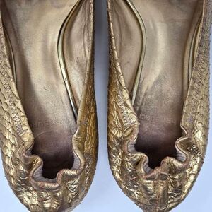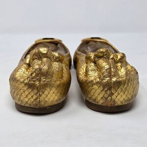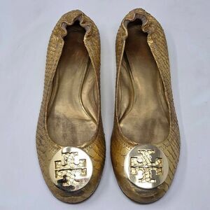 TORY BURCH REVA MEDALLION GOLD SNAKESKIN LEATHER FLATS LOAFERS WOMENS SIZE 8 M