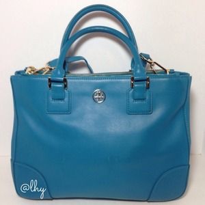 Authentic pre-owned Tory Burch Double-Zip Tote. 14”W x 11”H x 5.5”D. 4” top handle drop. Optional shoulder strap drop 24”. Electric Eel saffiano leather w/gold hardware. Logo medallion at front. Double zip top compartment on front & back wall w/center compartment with magnetic snap. Snaps on sides for expansion. Interior zip & slip pockets. Dustbag not included. Excellent pre-owned condition; slight surface scuffing on front up on inspection, see photos.❌NO TRADES NO PP PLEASE DO NOT ASK❌