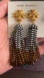 It features multi-colored seed bead tassels set against a carved brass Double T.