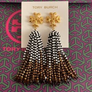 TORY BURCH ROXANNE BEADED TASSEL EARRING RED/ BLACK BEADS NEW WITH PACKAGE