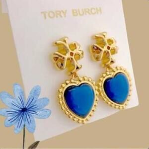 TORY BURCH ROXANNE BLUE /GOLD 18k GOLD PLATED EARRINGS NWT