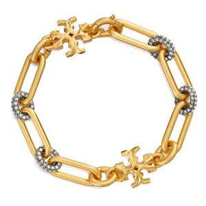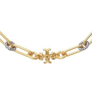 Elegant Tory Burch Gold Roxanne Chunky Necklace and Bracelet Set. Perfect accessory for adding a touch of sexy sophistication to any outfit.