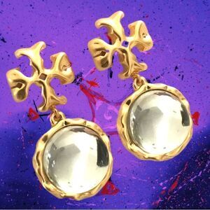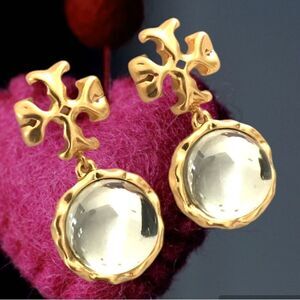 From designer Tory Burch these beautiful crystal drop earrings, measure 1.5 inches long with surgical steel posts.