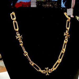 TORY BURCH ROXANNE SHORT CHAIN ROPE NECKLACE 18K GOLD PLATED