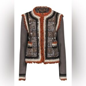 TORY BURCH RUNWAY Quincey Mixed Media Blazer Jacket Size 6 GUC