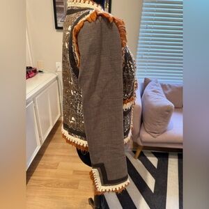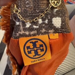 TORY BURCH Boho Tweed Brown Orange Hook & Eye Closure Blazer Jacket Size 6 GUC