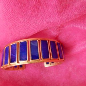Tory Burch Rectangle Epoxy Blue Gold Cuff Bracelet