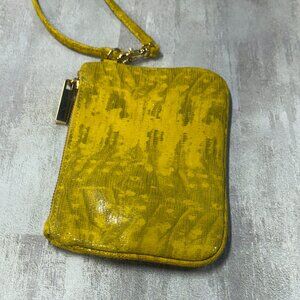 TORY BURCH Reva Croc Embossed Leather Wristlet Wallet - Yellow