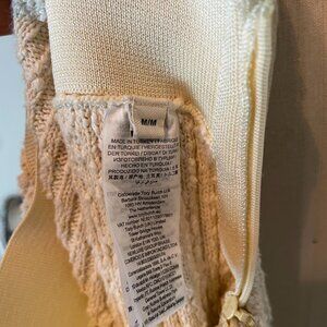 This is a gorgeous set. It looks incredible paired together but each piece also looks amazing with other items. Skirt is great for fall/winter with tall boots, or sandals in the spring. The sweater is perfect for year round. Ecru / ivory color is trend forward and versatile.