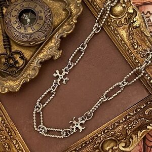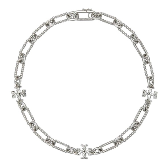 TORY BURCH • Rolled Tory Silver Roxanne Chain Logo Necklace