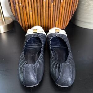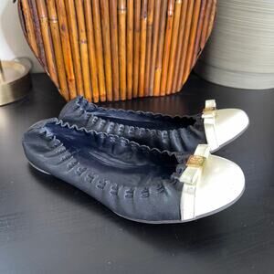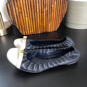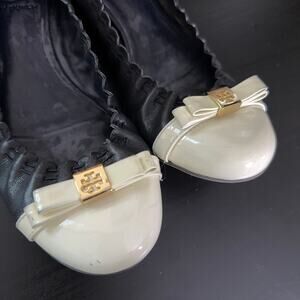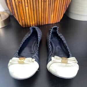 TORY BURCH Romy Flat Cap Toe Black White Leather Sz 7