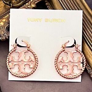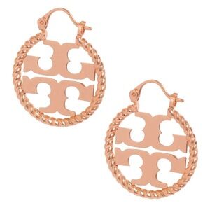 TORY BURCH • Rose Gold Rope Hoop Logo Earrings