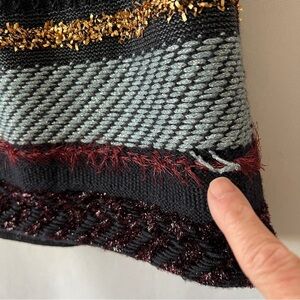 Womens size Small, wool blend, striped pattern, metallic threads, multicolor, mixed media, short length. Note some loose threads - see pics.