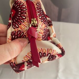 TORY BURCH SMALL FLORAL COSMETIC MAKEUP TOILETRY CASE BAG CREAM PLUM MAGENTA