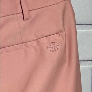 Trendy Tory Sport blush pink pants with sleek black & white side stripe. Straight leg fit, belt loops, and side pockets. Perfect for sporty chic, casual wear, or dressing up with heels.