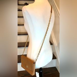 TORY BURCH Saddle Brown Tumbled Leather Crossbody Shoulder Bag