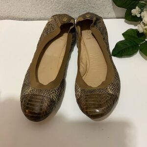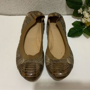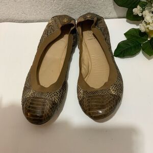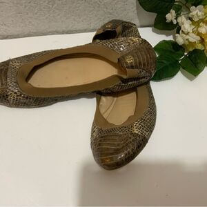 TORY BURCH Shoes Flats 10 M Lisa Tan Leather Snakeskin Ballet Stretch