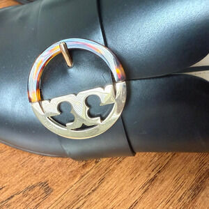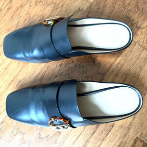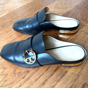 TORY BURCH Sidney Black Backless Loafer Mules Leather/Gold Sz 9.5M $358