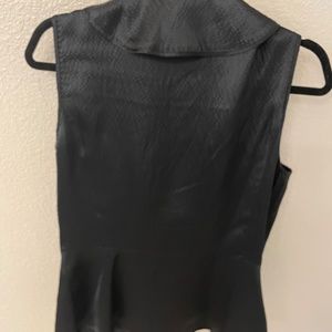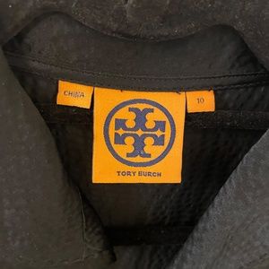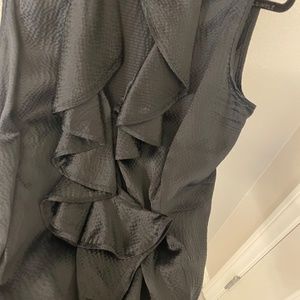 Worn once! Super cute black silk tank from Tory Burch. Featuring a flattering V-neckline with delicate ruffle accents, this sleeveless top is perfect for any occasion.