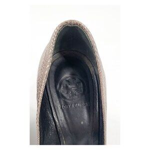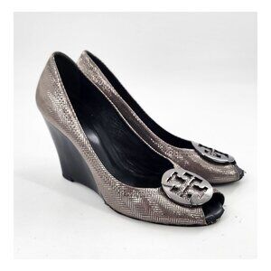 TORY BURCH Silver Herringbone Pattern Wedge Pumps Poor Condition