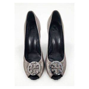 TORY BURCH Peep Toe Medallion Herringbone Pattern Wedge Pumps Poor Condition