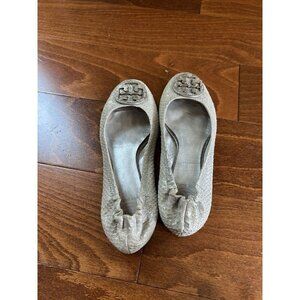 TORY BURCH Silver Snakeskin Leather Ballet Flats Size 8 leather