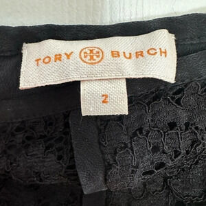 TORY BURCH Size 2 BLACK Everett Lace Pencil Skirt Silk Lining Mini Scalloped Hem