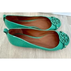 TORY BURCH Size 6.5 M Mini Miller Pond Green Logo Ballet Flat Leather Shoes