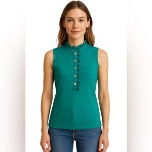 💚TORY BURCH Sleeveless Teal Top with Ruffle Detail Size XS