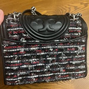 TORY BURCH Small Fleming Tweed Black Convertible Shoulder Bag