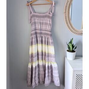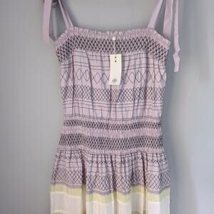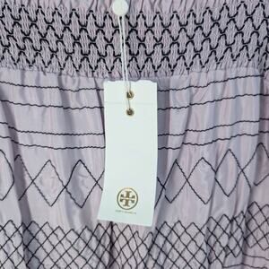 TORY BURCH Smocked Silk Maxi Dress, Bow Straps, Purple, 100 % Silk, size 4, NWT