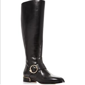 TORY BURCH Sofia Black Leather Riding Boot Knee-High Extended Width Size 6.5 NEW