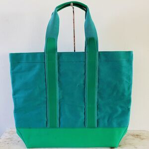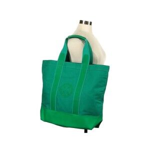 TORY BURCH Solid Green Color Block Extra Large Canvas Tote Bag