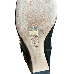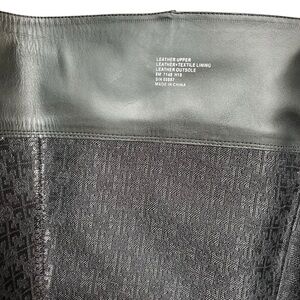 TORY BURCH Sophia Black Nappa Leather Tall Wedge Riding Boots. Interior full side zipper for easy on and off. Gold Tory Burch logo faux buckle. Stacked wedge heel. Super comfortable.