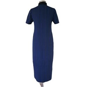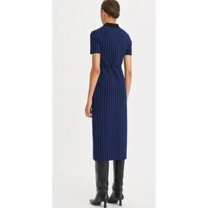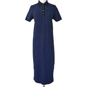 TORY BURCH Striped Ribbed Polo Midi-dress In Navy Black Size Large Short Sleeve