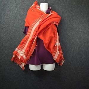TORY BURCH Style 51155115 Sz 32" x 80" Wool Scarf POPPY ORANGE 619 MSRP $195
