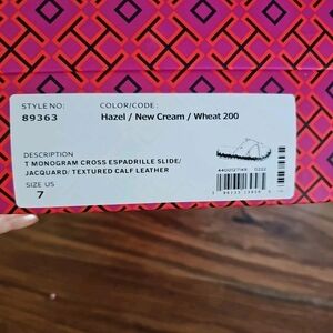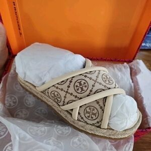 TORY BURCH T MONOGRAM JACQUARD LEATHER CROSS ESPADRILLE SLIDES SANDALS 7, NIB
