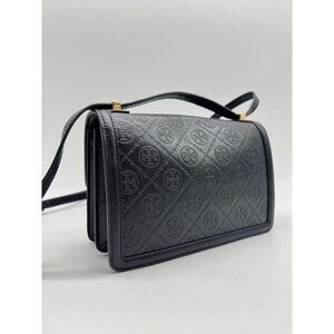 TORY BURCH T monogram leather convertible crossbody bag -BLACK (Has scratch)