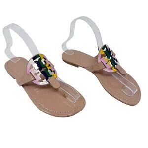 TORY BURCH Tan Beige Miller Sandal Flip Flop with Rainbow Stripe Logo
