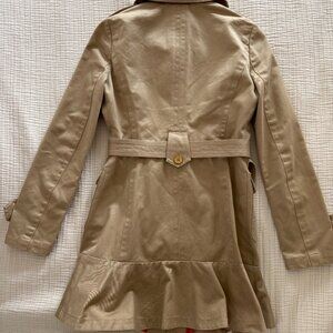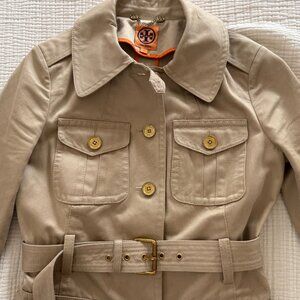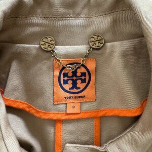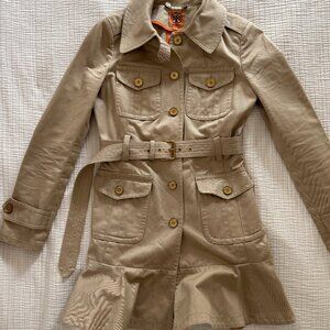 TORY BURCH Tan Khaki Utility Ruffled & Skirted Trench Coat Jacket Sz. 0