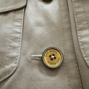 Great Tory Burch Trench Coat with beautiful orange piping detail on the inside. Buttons have some wear, but still in good condition since I've only worn it a handful of times.