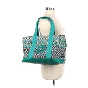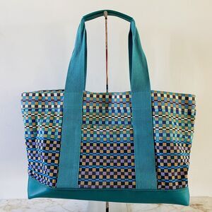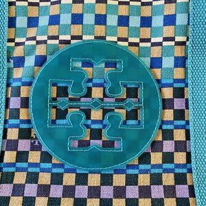 TORY BURCH Teal Blue Color Block Canvas Tote Bag