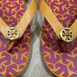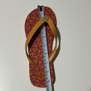 TORY BURCH Thandie Logo Print Flip Flop Sandals Hot Pink Orange 8 Resort Beach