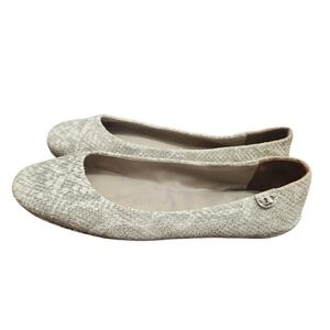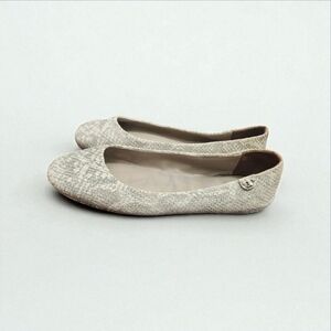 TORY BURCH Travel T Snake Embossed Sparkling Leather Ballet Flats Roccia 9M
