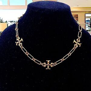 TORY BURCH VINTAGE ROXANNE SHORT CHAIN NECKLACE 18K GOLD PLATED