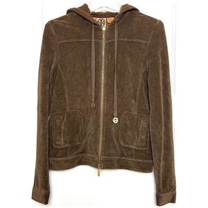 TORY BURCH Vintage Y2K Brown French Terry Cloth Slim Fit Zip Up Hooded Jacket S