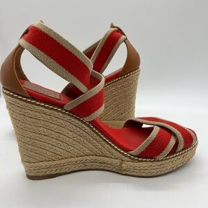 TORY BURCH WOMENS RED AND TAN WEDGE ADONIS WEDGE ESPADRILLES SIZE 10B